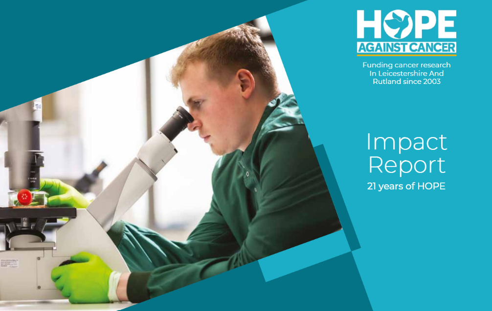 The report shares news about the staff and scientific projects that Hope Against Cancer supports, updates readers about the world-renowned Hope Cancer Trials Centre at the Leicester Royal Infirmary, and explains how results and scientific skills originating in Leicester are shared to help global efforts to overcome cancer.