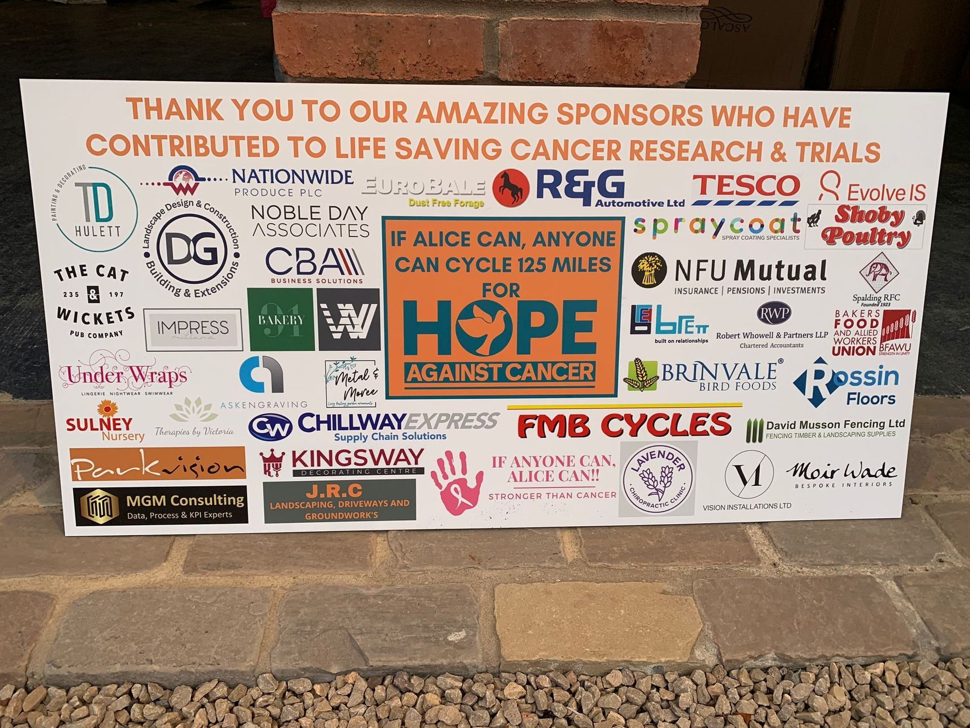 Alice's cycle challenge raises over £100,000 for Hope Against Cancer